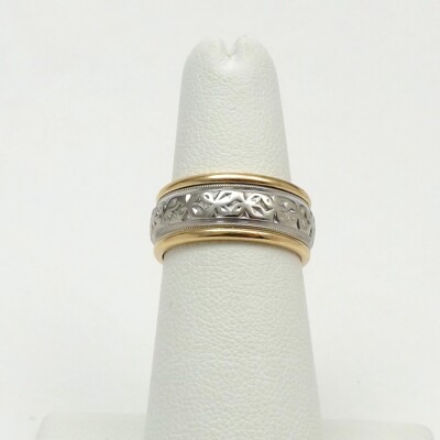 Retro Deco Art Carved Jr Wood 14k Gold 8mm Floral Spinner Wedding Band Ring Sz6 Ebay